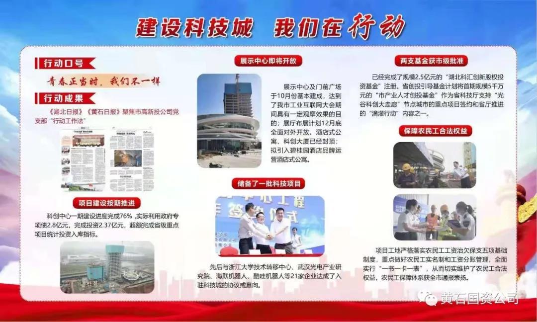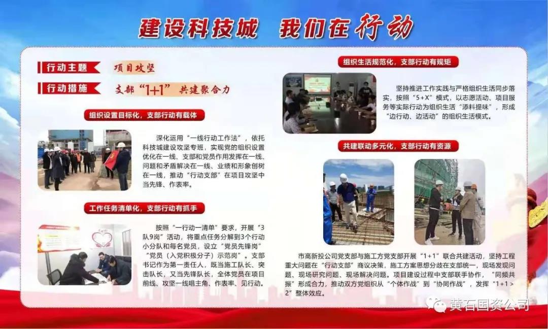 市高新投党支部隶属于1xbet官网 党委,自成立以来,该支部全面推行“行动支部”工作法:支部工作在工地、党员活动在工地、作用发挥在工地,将党的建设与项目建设结合起来,以“服务黄石打造创新活力之城”为行动方向,以“又好又快推进省级重点项目科技城科创中心建设”为行动目标,以“项目攻坚”为行动主题,以“青春正当时,我们不一样”为行动口号,创新开展“1+1”党员攻坚、抗洪抢险行动和“筑坚强堡垒·建过硬队伍”能力提升活动,建立党员攻坚突击队,设置党员示范岗,激励党员积极投身干事创业活动。